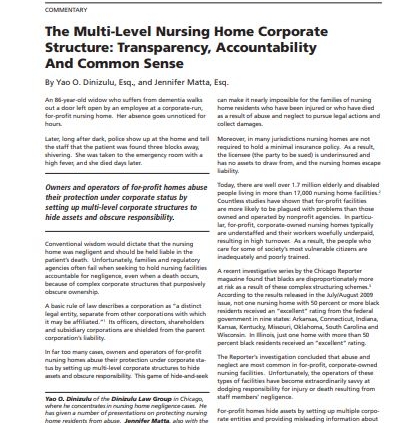 Commentary: The Multi-Level Nursing Home Corporate Structure: Transparency, Accountability and Common Sense